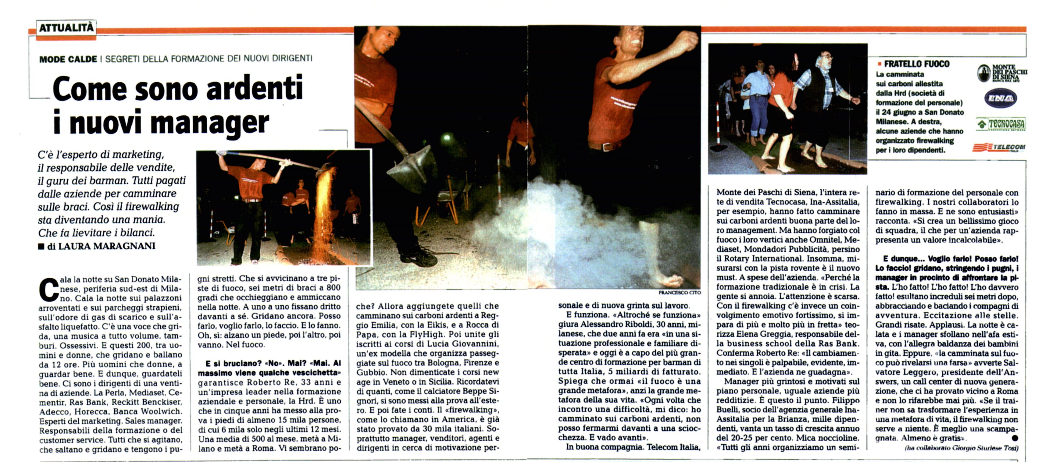 C’è l’esperto di marketing, il responsabile delle vendite, il guru dei barman. Tutti pagati dalle aziende per camminare sulle braci. Così il firewalking sta diventando una mania. Che fa lievitare i bilanci.