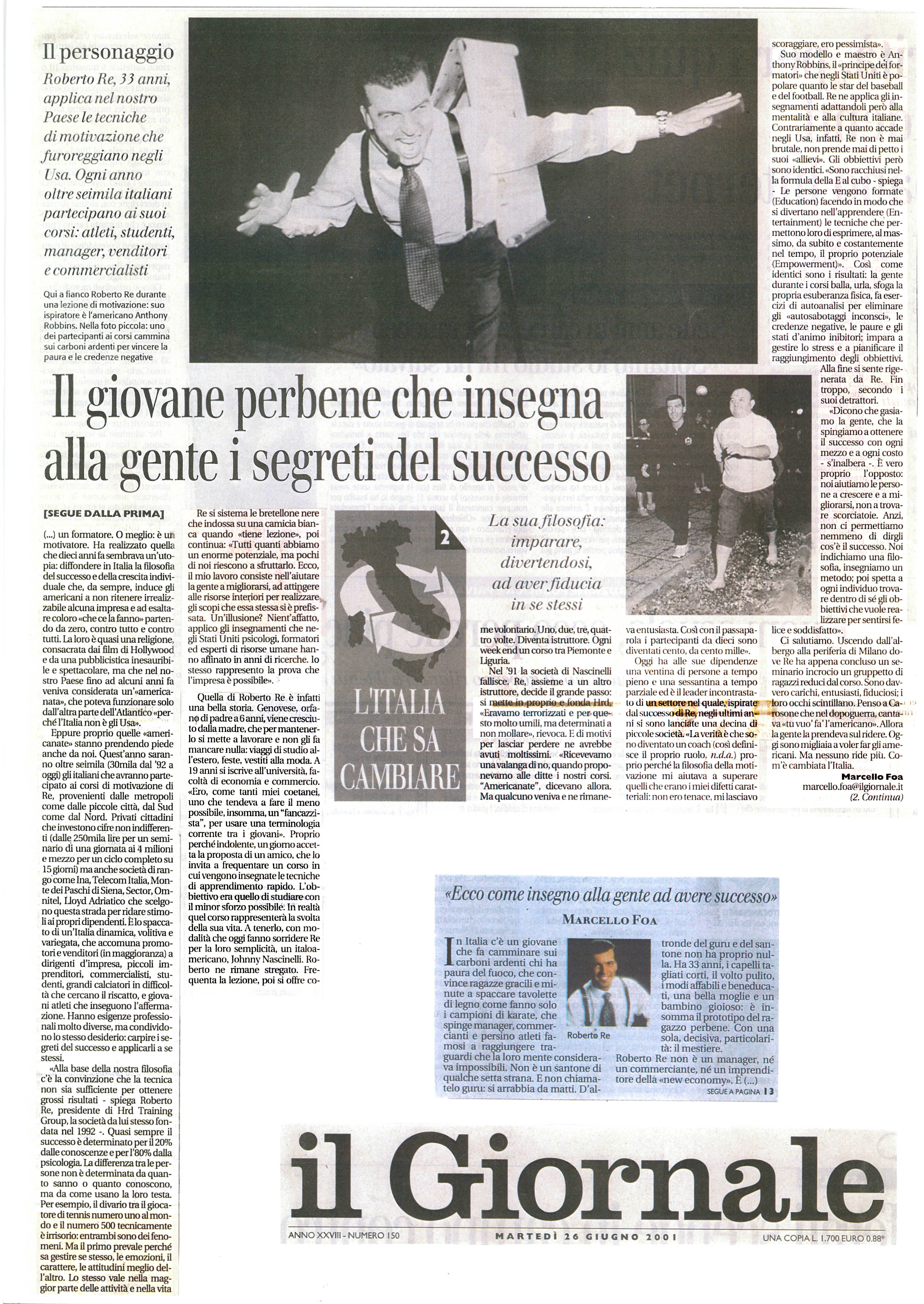 Re applica nel nostro Paese le tecniche di motivazione che favoreggiano negli Usa.Ogni anno oltre seimila italiani partecipano ai suoi corsi .