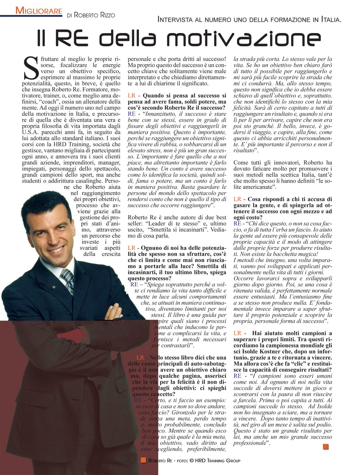 Sfruttare al meglio le proprie risorse, focalizzare le energie verso un obiettivo specifico, esprimere al massimo le proprie potenzialità, questo, in breve, è quello che insegna Roberto Re. Formatore, motivatore, trainer, o, come meglio ama definirsi, ?coach?, ossia un allenatore della mente.