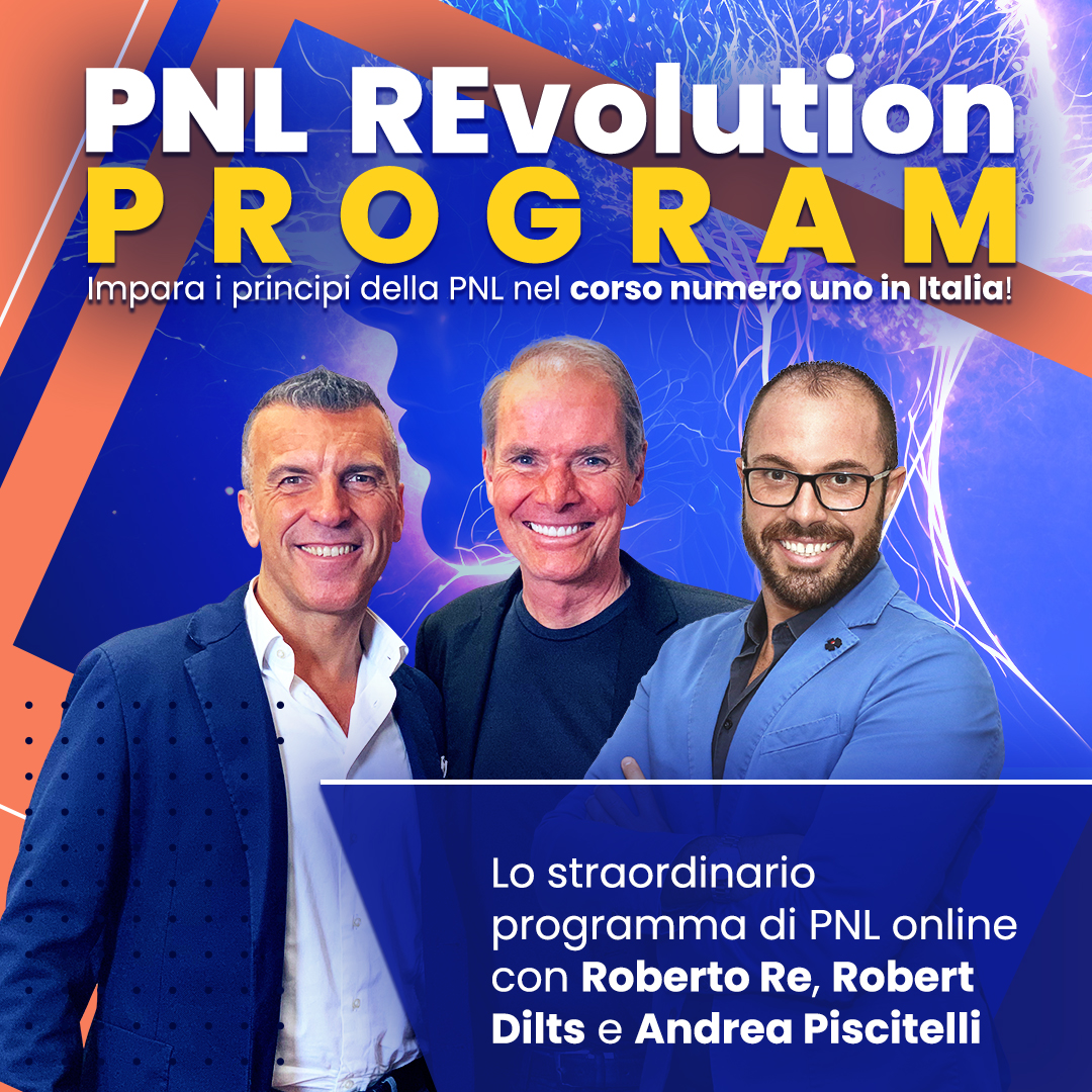 Impara la vera PNL per trasformare radicalmente la tua vita, con Roberto Re, Andrea Piscitelli e Robert Dilts. Nuova edizione migliorata con ancora più focus sulla parte pratica della Programmazione Neuro Linguistica con laboratori e affiancamento post corso.